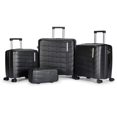 طقم شنط سفر مكون من 4 حقائب أمتعة بعجلات و بتصميم صلب وقوي مصنوع من مادة البولي بوربلين لون أسود